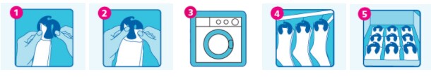 3. Vervolgens kunnen ze zo in de wasmand, in een wasnetje in de wasmachine en in de droger.
